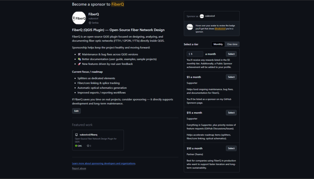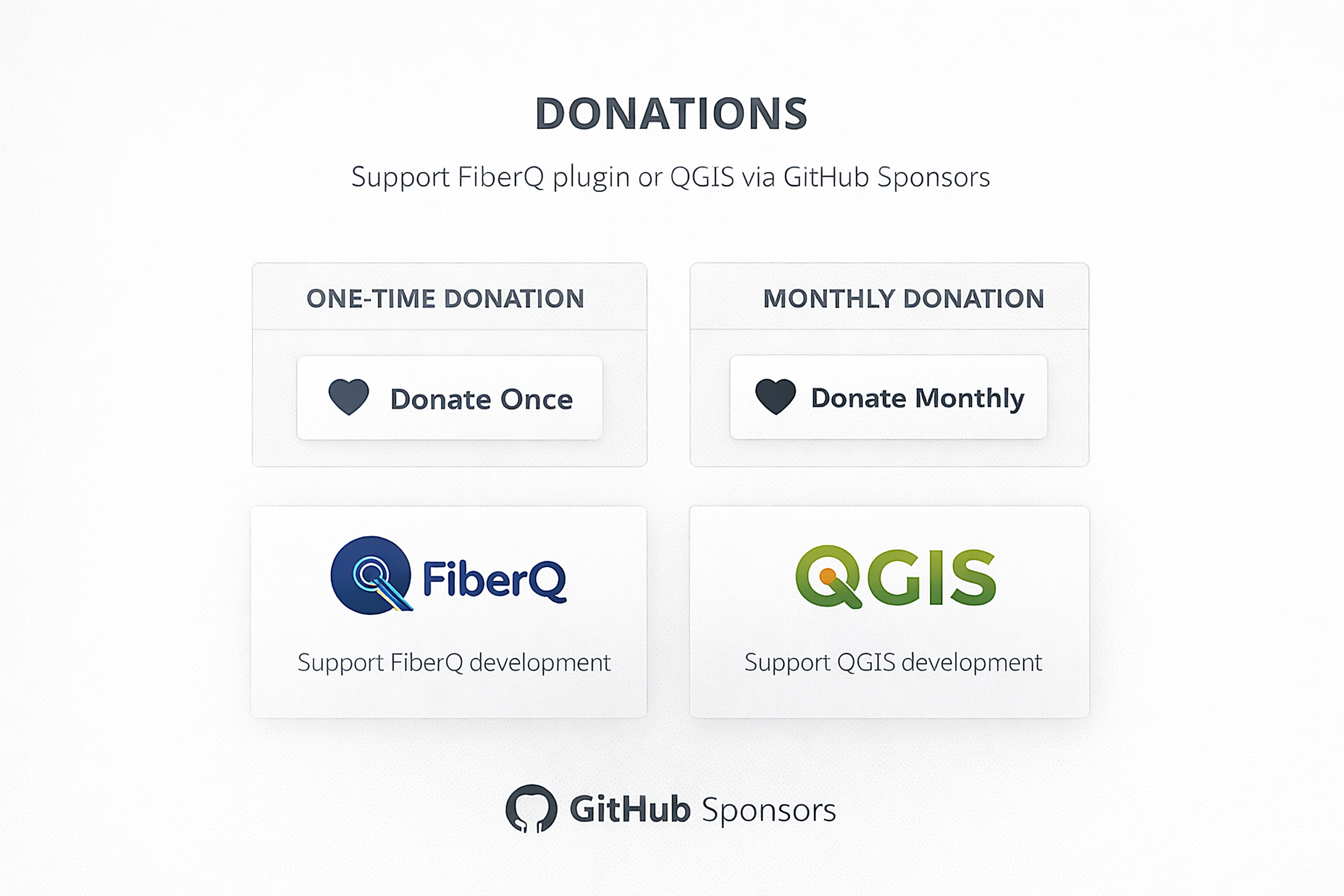 FiberQ is free and open-source. Donations help fund maintenance, bug fixes, documentation, and long-term stability across QGIS releases.